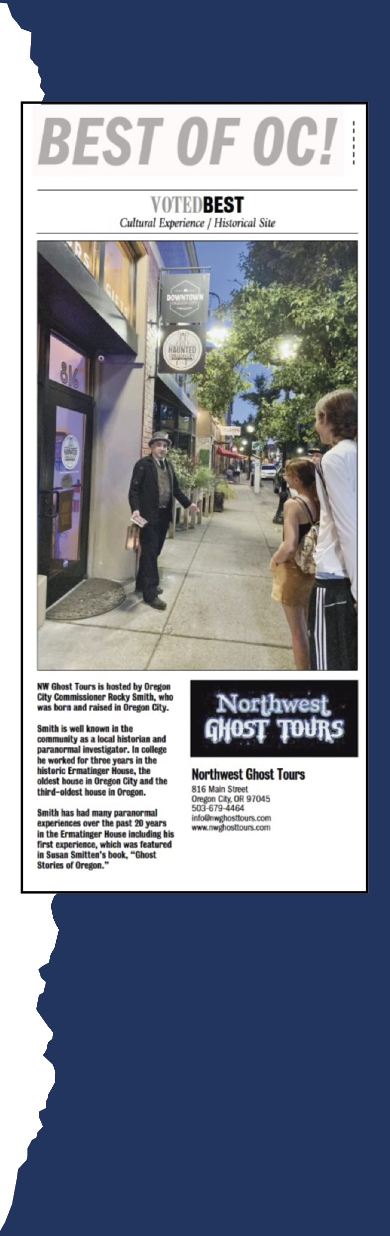 | | | | | Oregon City's ORIGINAL Ghost Tour! | | | | | |  |  |  |  | | |  |